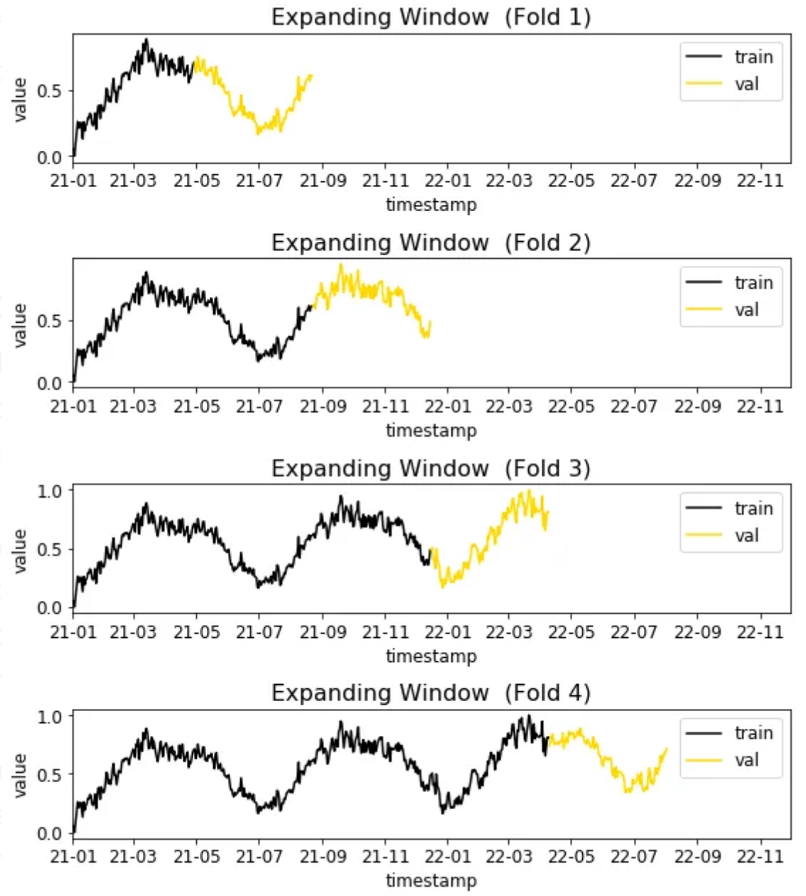 print(f"\nFold {fold}: \ntraining data from {train_df['timestamp'].min()} to {training_date}\nvalidation data from {training_date + timedelta(1)} to {valid_date}")
