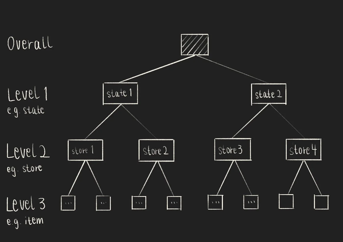 Hierarchical time series – Unlike common multivariate time series problems, hierarchical time series can be aggregated on different levels: e.g., item level, store level, and state level. In this competition, the competitors were given over 40,000 time series of 3,000 individual products from 3 different categories, sold in 10 stores across 3 states.