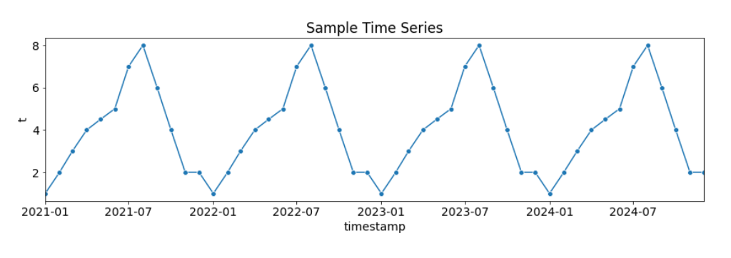 The following time series is periodical with T=12. It consists of 48 timesteps.