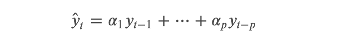 The Auto-Regressive (AR) model assumes that the current value (y_t) is dependent on previous values (y_(t-1), y_(t-2), …). Because of this assumption, we can build a linear regression model.