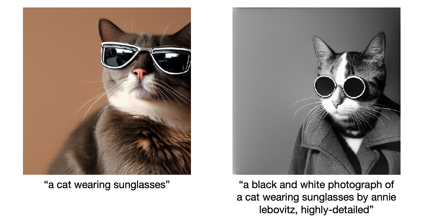 We discussed how you could improve an acceptable-looking image from a prompt that only contained the subject like “a cat wearing sunglasses”.
