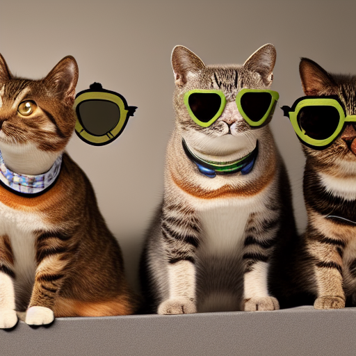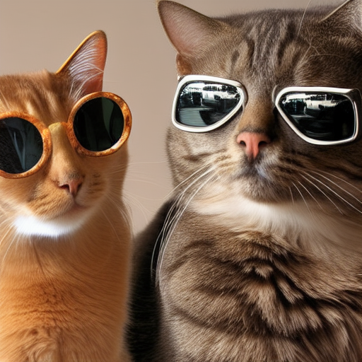 While the above image generated with Stable Diffusion’s DreamStudio produced two separate cats, it shows its struggles in the following image. You can see that the cat on the left is not wearing sunglasses. Instead, the pair of sunglasses seems to be floating behind the cat.