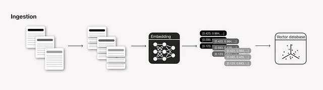 The ingestion stage is a preparation step for building a RAG pipeline, similar to the data cleaning and preprocessing steps in an ML pipeline. Usually, the ingestion stage consists of the following steps: